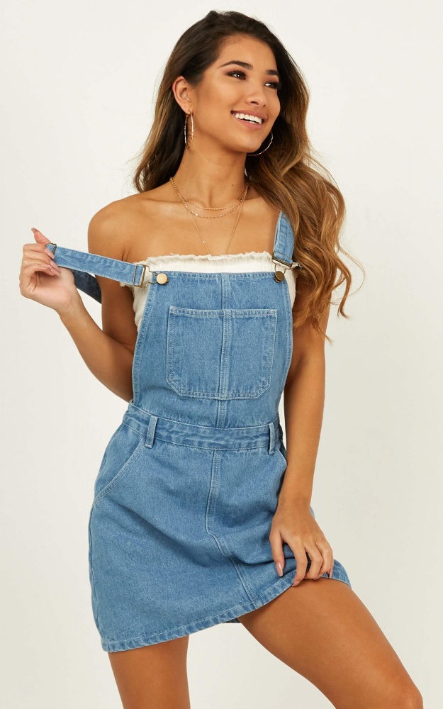 Dont Let Me Go Denim Overall In Mid Wash Showpo