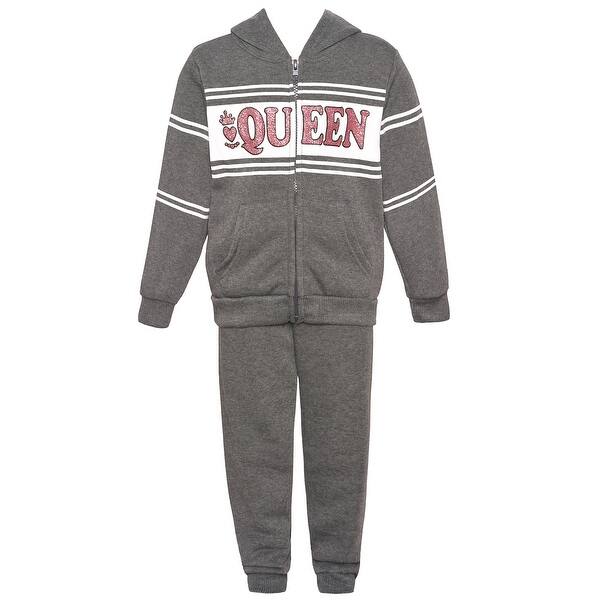 Shop Girls Gray White Pink Sparkle Queen Zip Up Jacket Pants 2pc