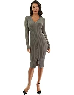 Clothing Pattyboutik Womens Zip Up Elbow Sleeve Jumper Dress