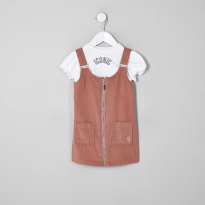 Mini Girls Pink Pinafore Dress Outfit River Island