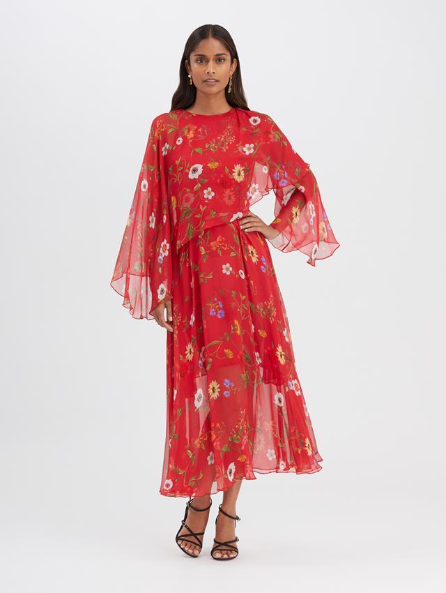 Botanical Chiffon Dress Dresses Oscar De La Renta Red Multi