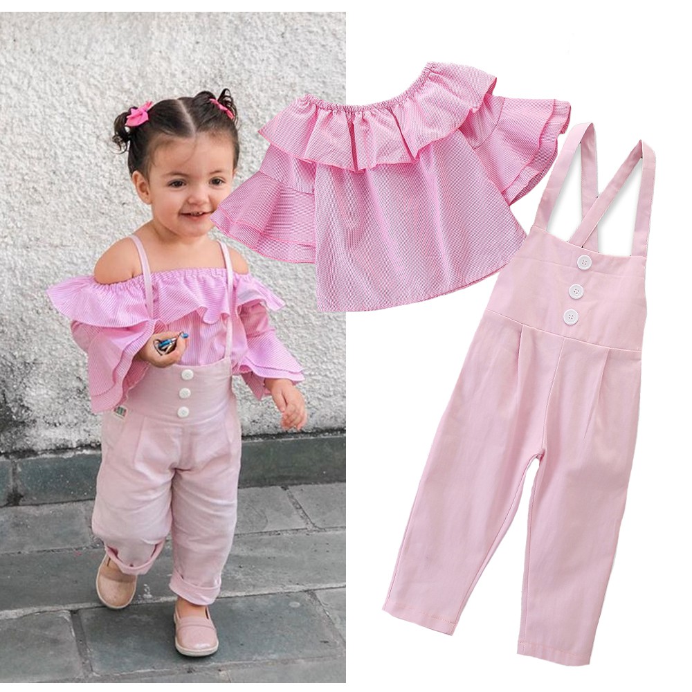 Girls Clothing Set Grid Off Shoulder Tops Jumpsuit Fashion