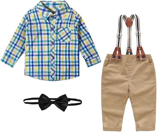2pcs Kids Infant Baby Boys Plaid Shirt Suspender Pants Overalls