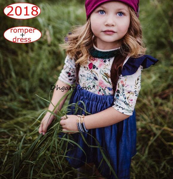 0 5t Girls 2pcs Set Kids Floral Rompers Denim Suspenders Dress