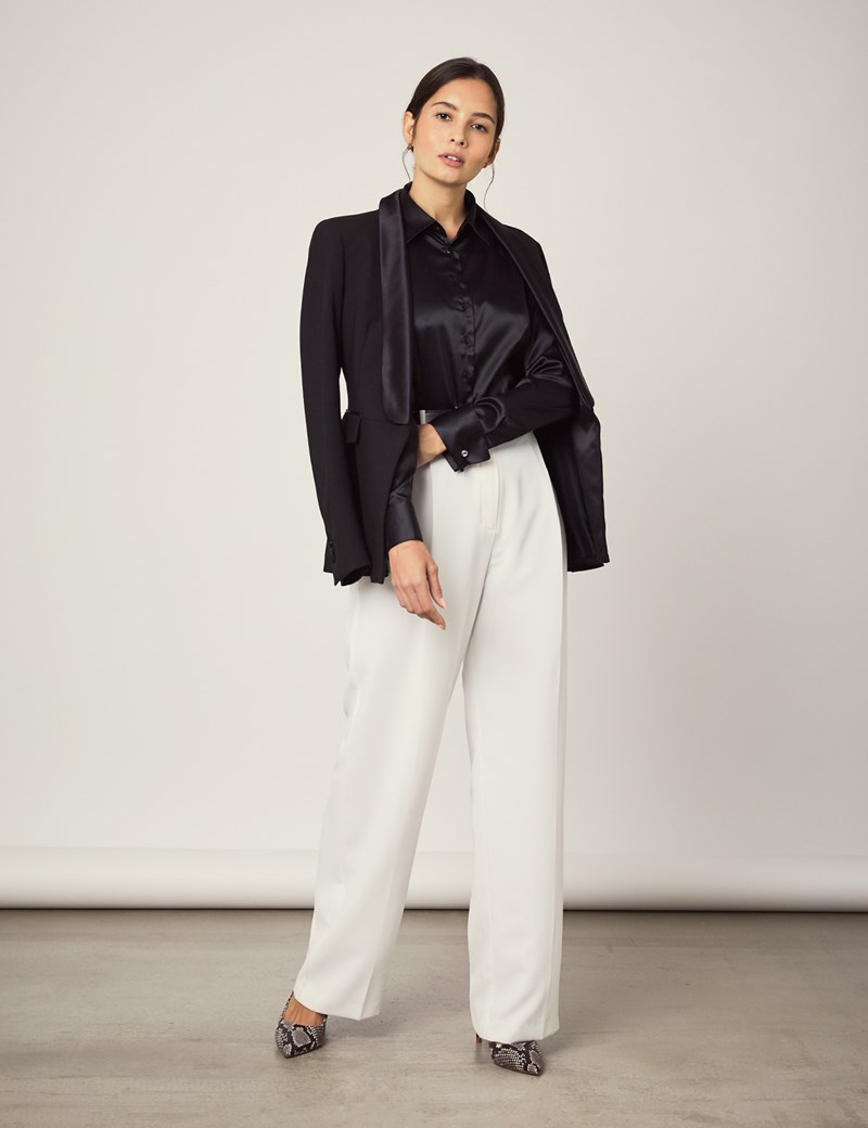 Women S Black Fitted Satin Shirt Double Cuff Hawes Curtis