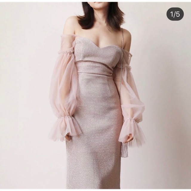 Pink Glitter Sweetheart Neckline Dress With Sheer Puffy Sleeves