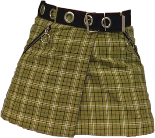 Skirt Aesthetic Clothes Outfit Green Plaid Cute Belt