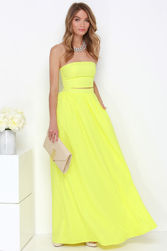Chic Yellow Dress Two Piece Dress Maxi Dress Strapless Dress